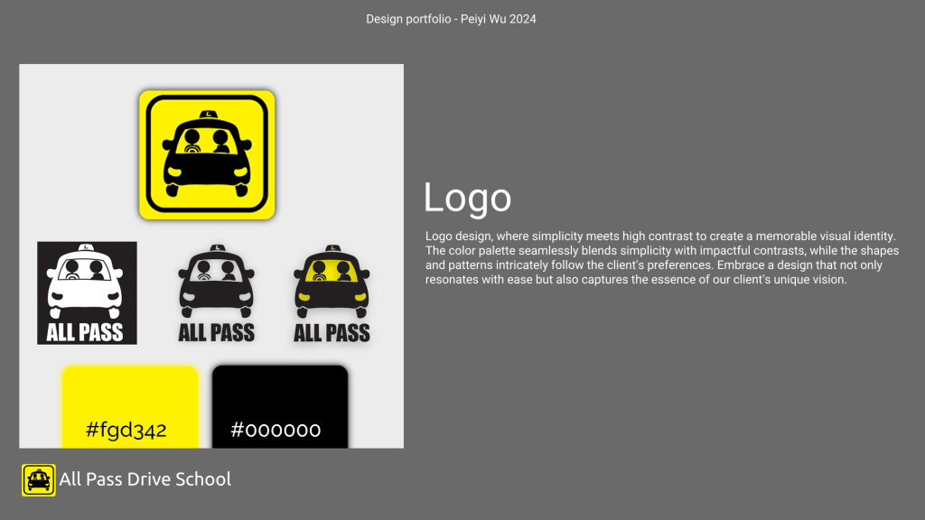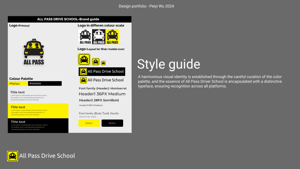 Here shows the Logo identify and the style guide, drive school owner wants something that easy to make people linking to driving with a high contrast.