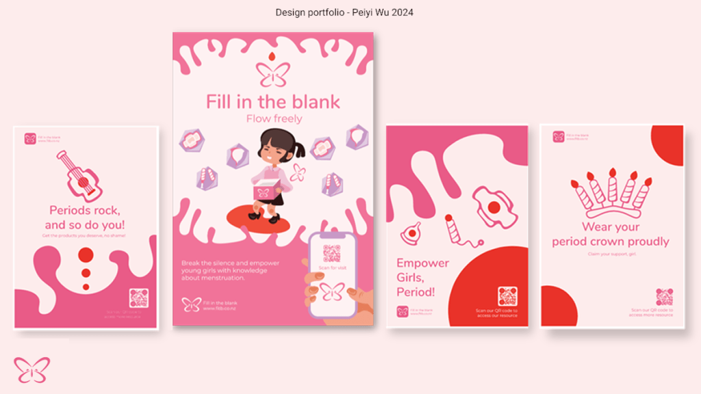 ‘Fill in the blank’ is my design degree graduate project from the University of Waikato. In this project, my group mates and I created a campaign to decrease period poverty in NZ.