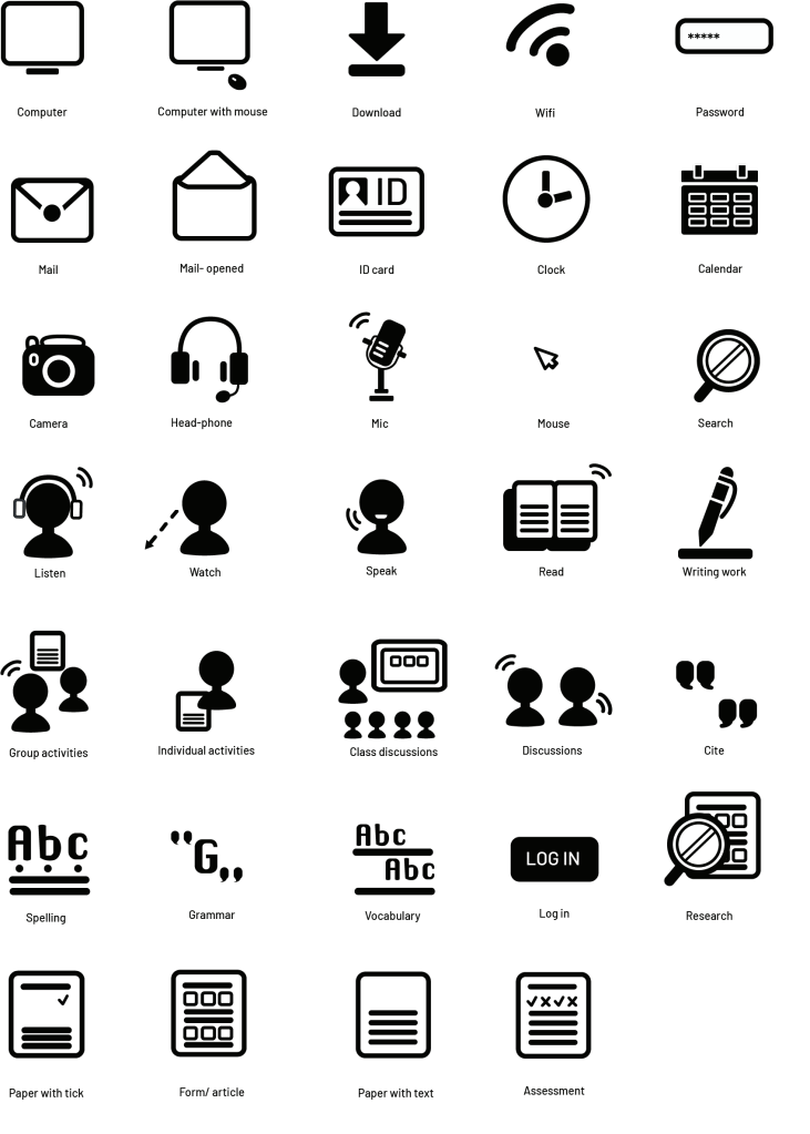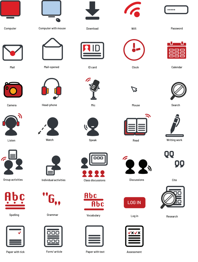 This set of icons has been used in the email content and PowerPoint presentations, as university resources.