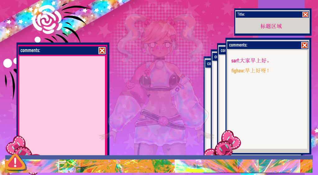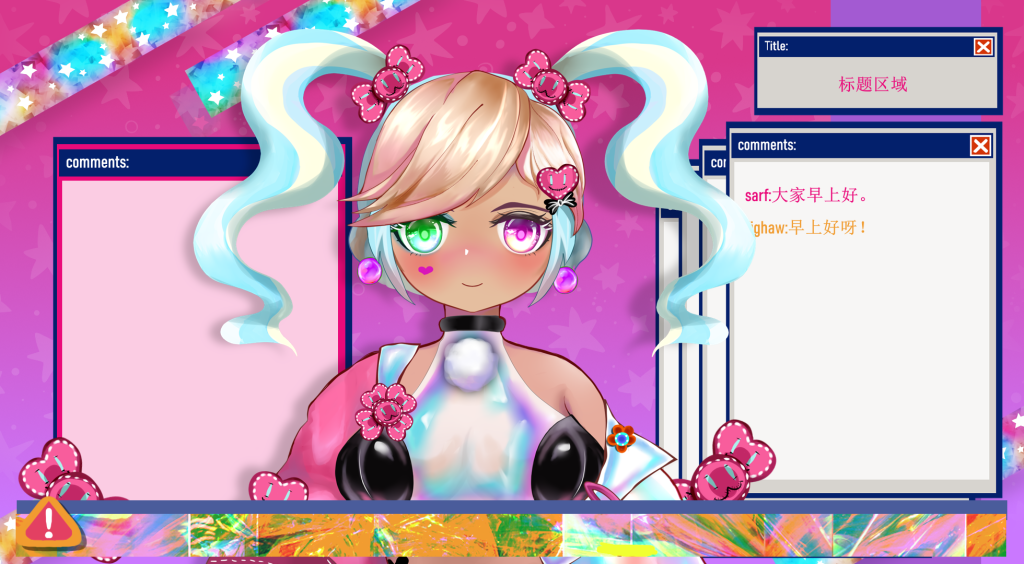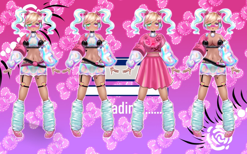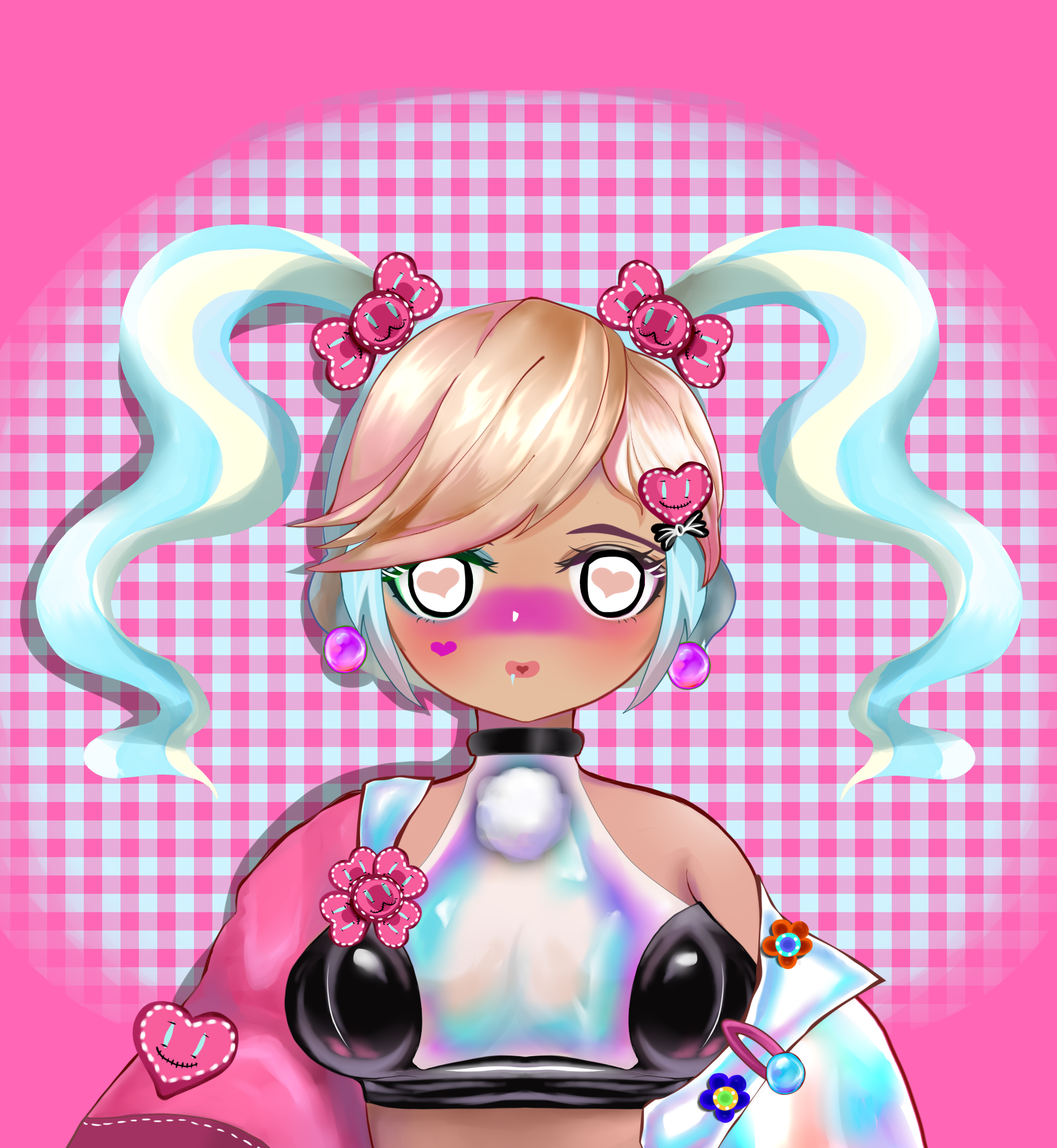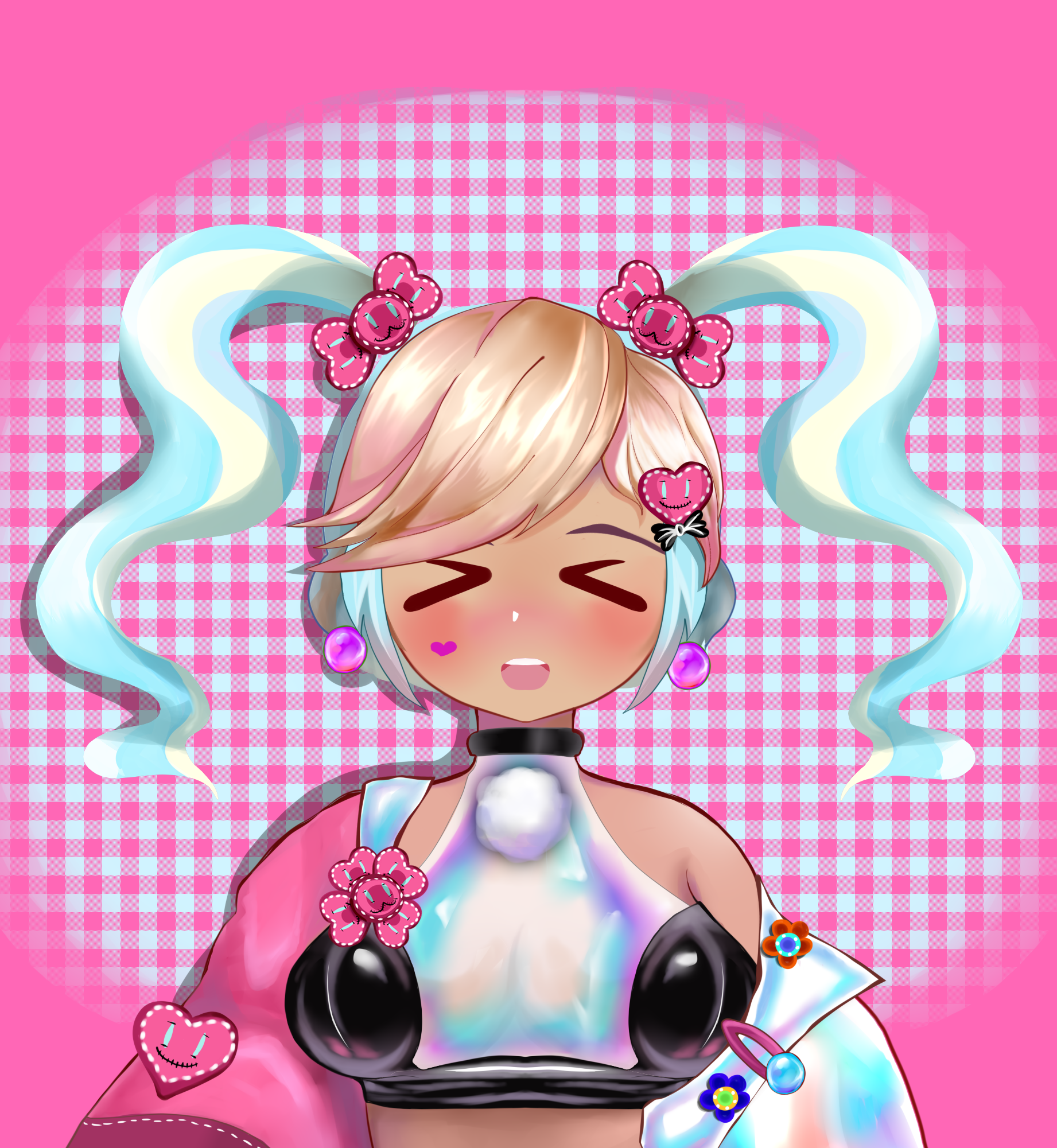 Cyber Punk style V-tuber character design. Including full concept art with UI background wallpaper for stream room. Suitable for use live 2D for edit.